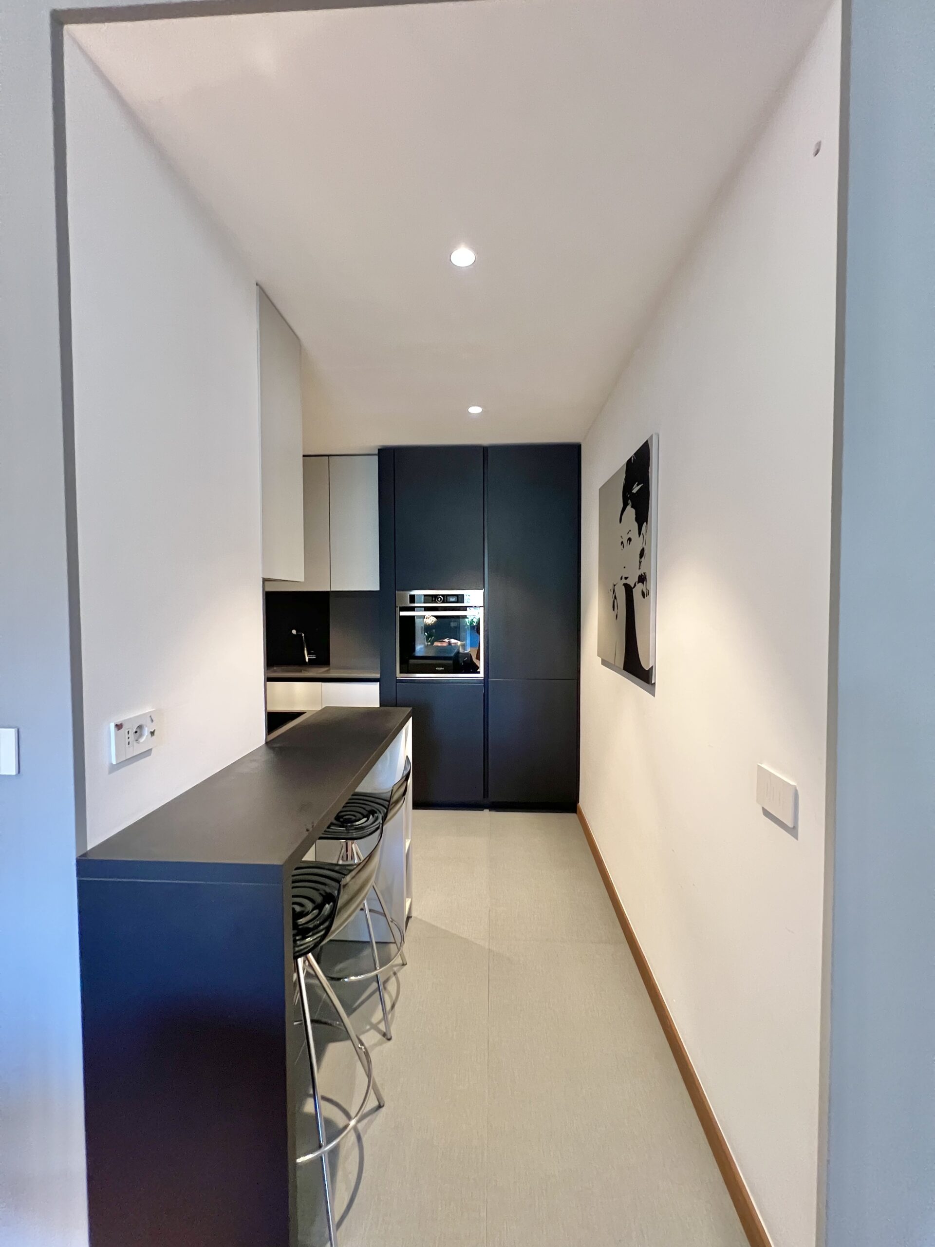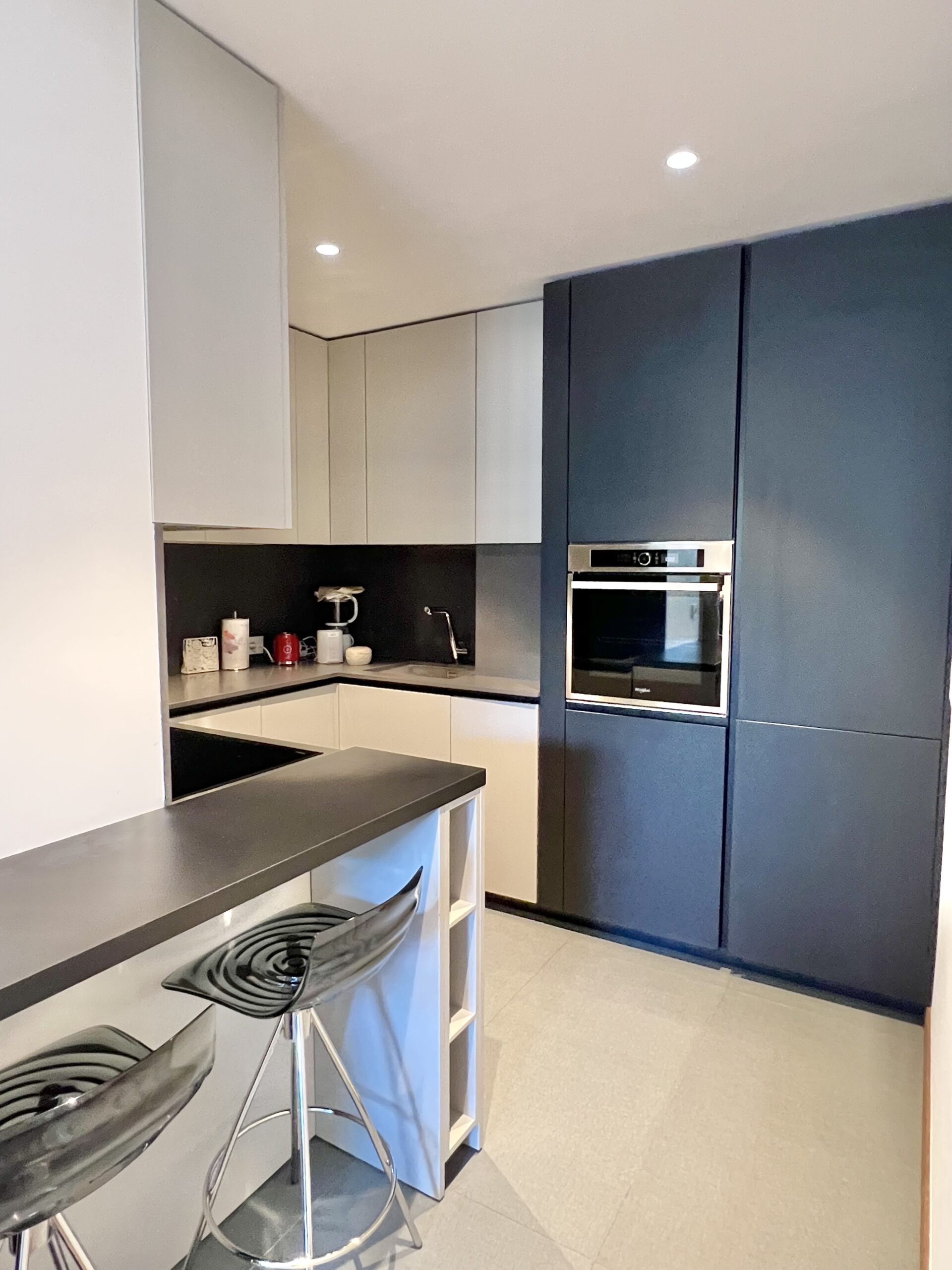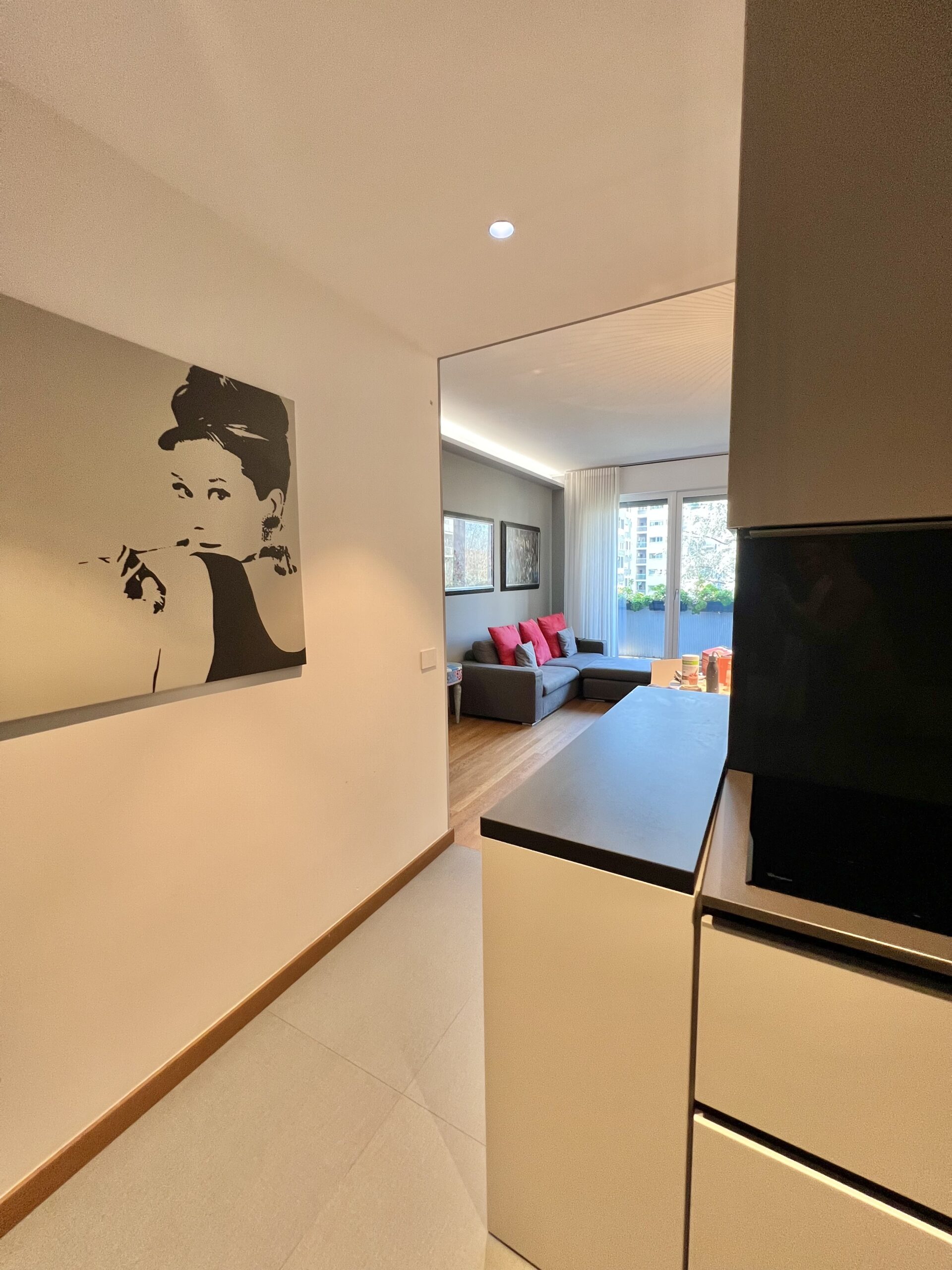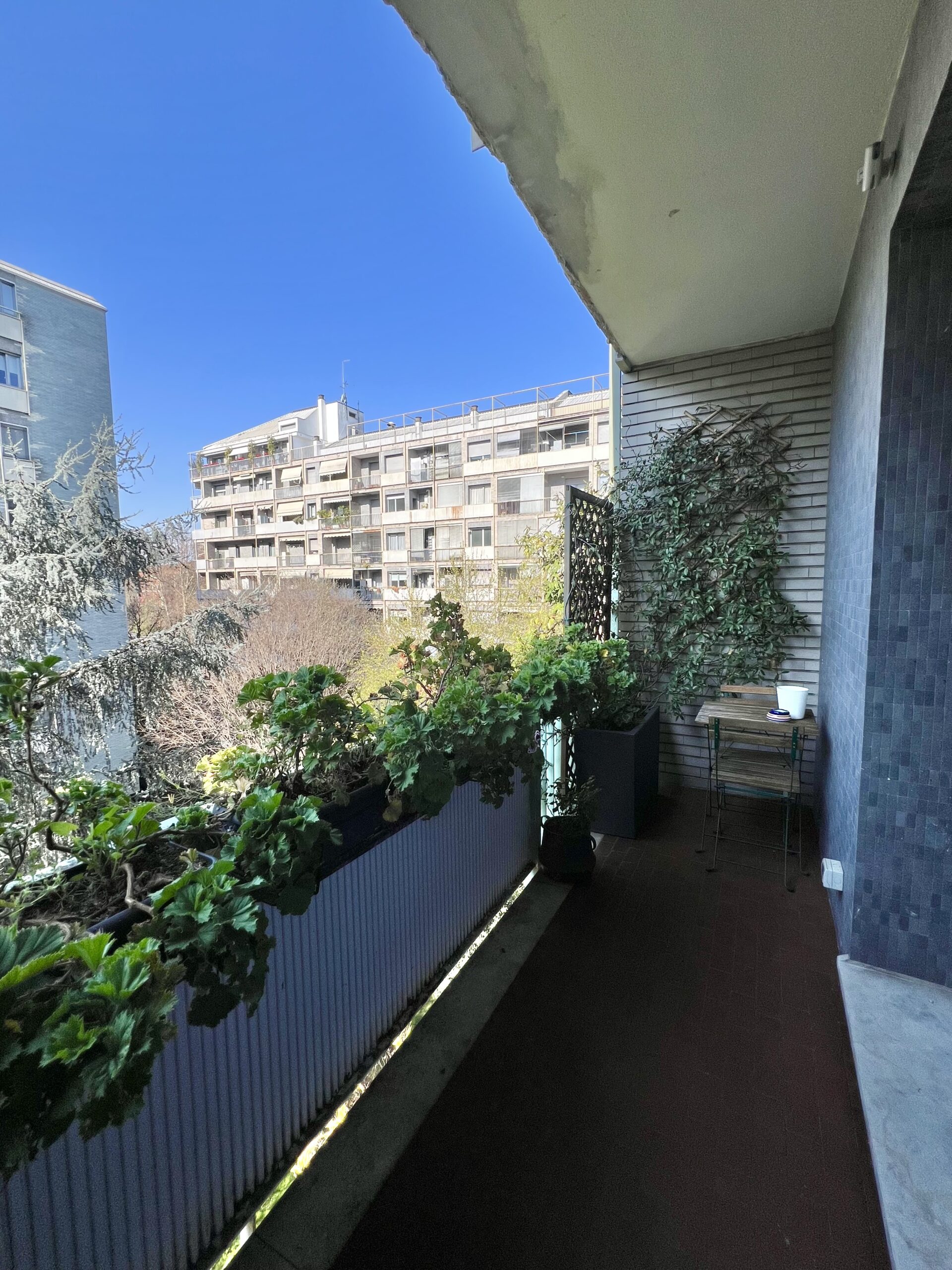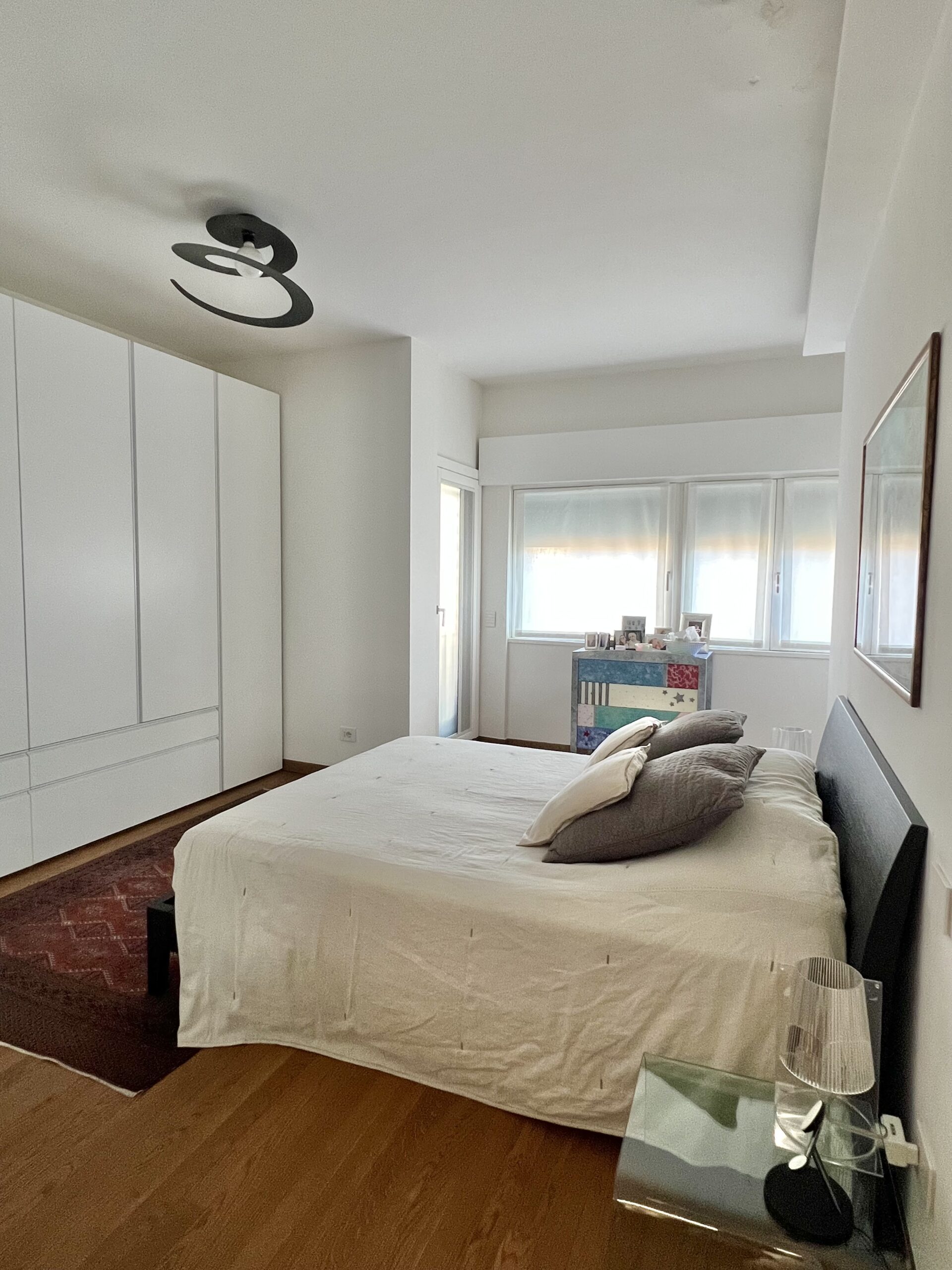 L’immobile, sito al quarto piano, è stato ristrutturato ed è composto da: ingresso, soggiorno con ampio balcone abitabile, angolo cottura, camera matrimoniale con balcone e bagno en suite con finestra e balcone, camera singola con balcone, secondo bagno e zona lavanderia. Completa la proprietà la possibilità di ampio box al piano interrato.